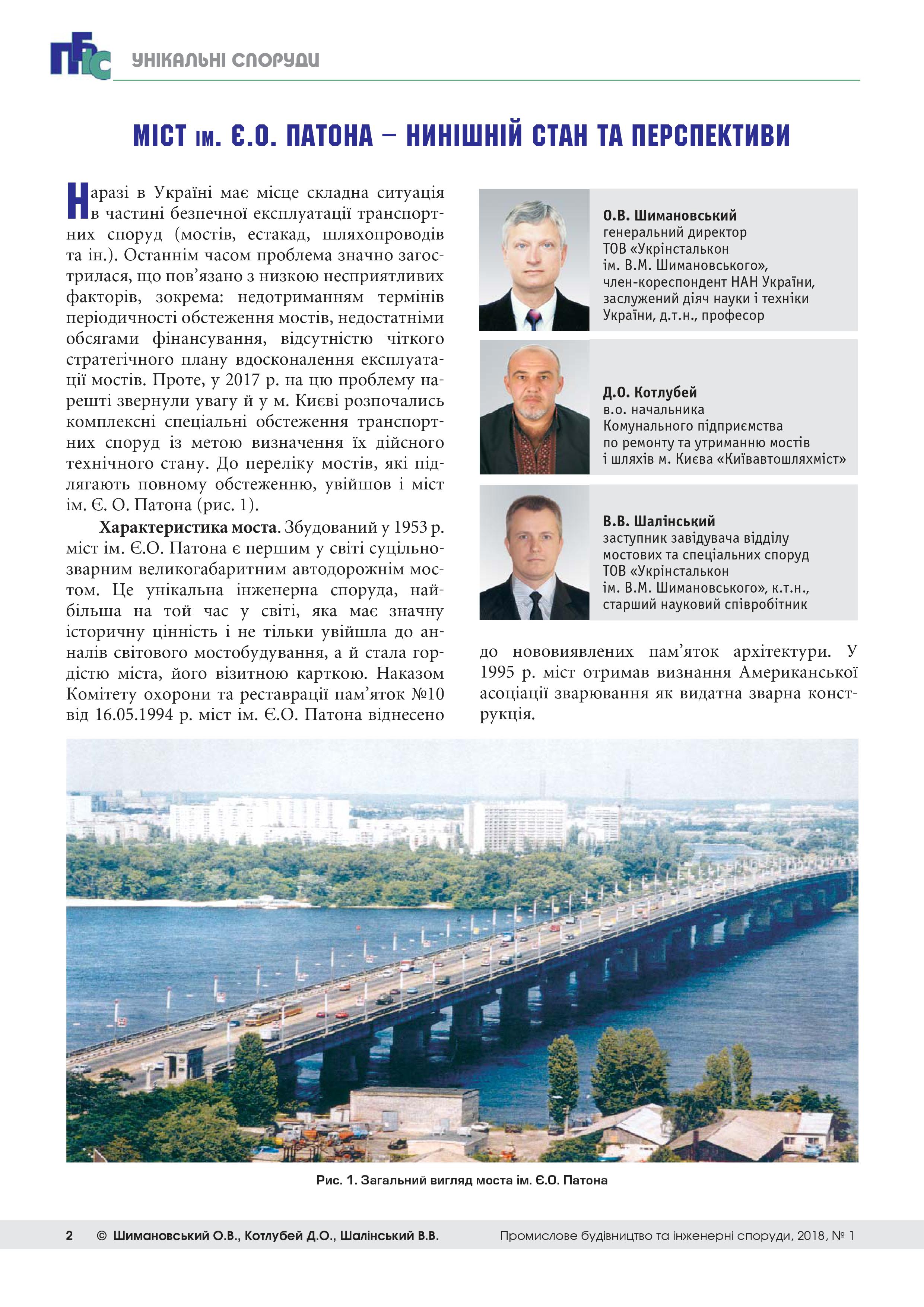 На сьогоднішній день міст ім. Є.О. Патона знаходиться у незадовільному технічному стані та вимагає негайного проведення ремонтних робіт, в першу чергу – невідкладних. Зволікання призведе до подальшої деградації конструкцій, та, як наслідок – непрацездатного експлуатаційного стану, що унеможливить його безпечну експлуатацію. Враховуючи технічний стан конструкцій моста, зокрема несучих конструкцій проїзної частини, а також складність і низьку ефективність їх відокремленого ремонту, доцільно провести комплексну реконструкцію моста ім. Є. О. Патона, при цьому розроблене у 2004 р. ТОВ «Український інститут сталевих конструкцій імені В.М. Шимановського» техніко-економічне обґрунтування, з розширенням його проїзної частини до 33,25 м (шляхом заміни монолітної залізобетонної плити проїзної частини на полегшену металеву ортотропну плиту і встановлення консольних підкосів), а також організації восьми смуг руху автотранспорту. Результати обстеження вкотре підтвердили, що недотримання правил експлуатації транспортних споруд та несвоєчасне проведення необхідних ремонтних робіт призводить до зниження довговічності конструкцій та негативно впливає на безпеку експлуатації споруд. Про поточний стан та перспективи пише видавництво «Промислове будівництво та інженерні споруди».