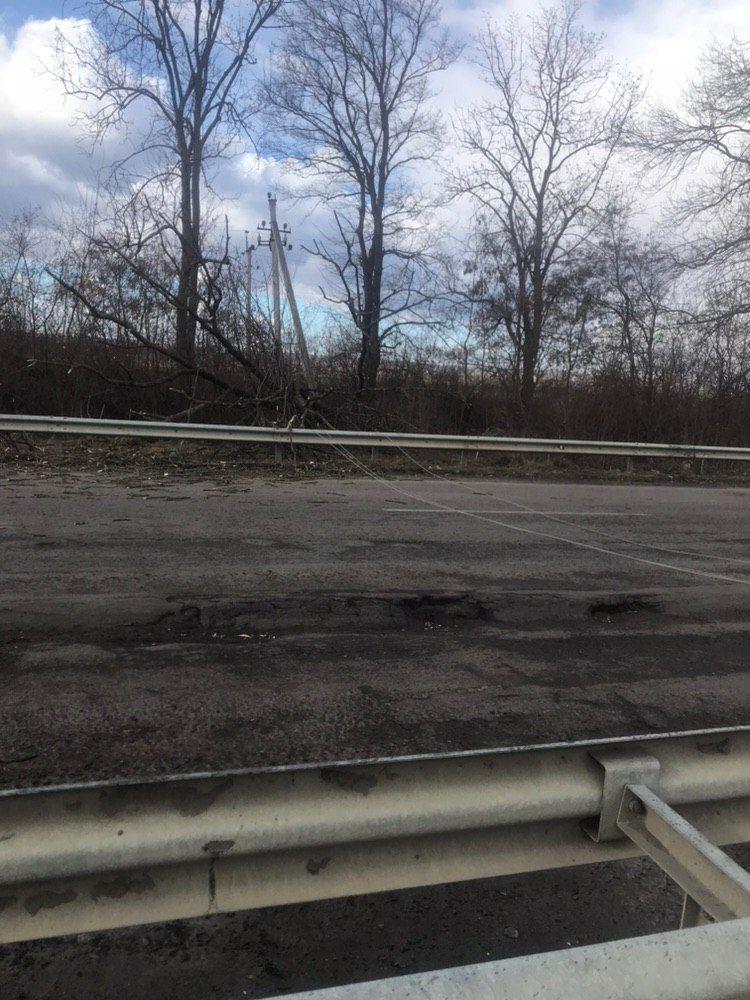 В Черновицкой области из-за сильного ветра на трассу вблизи пункта пропуска "Порубное" упали провода высоковольтной линии. Из-за этого движение по международной трассе перекрыли.