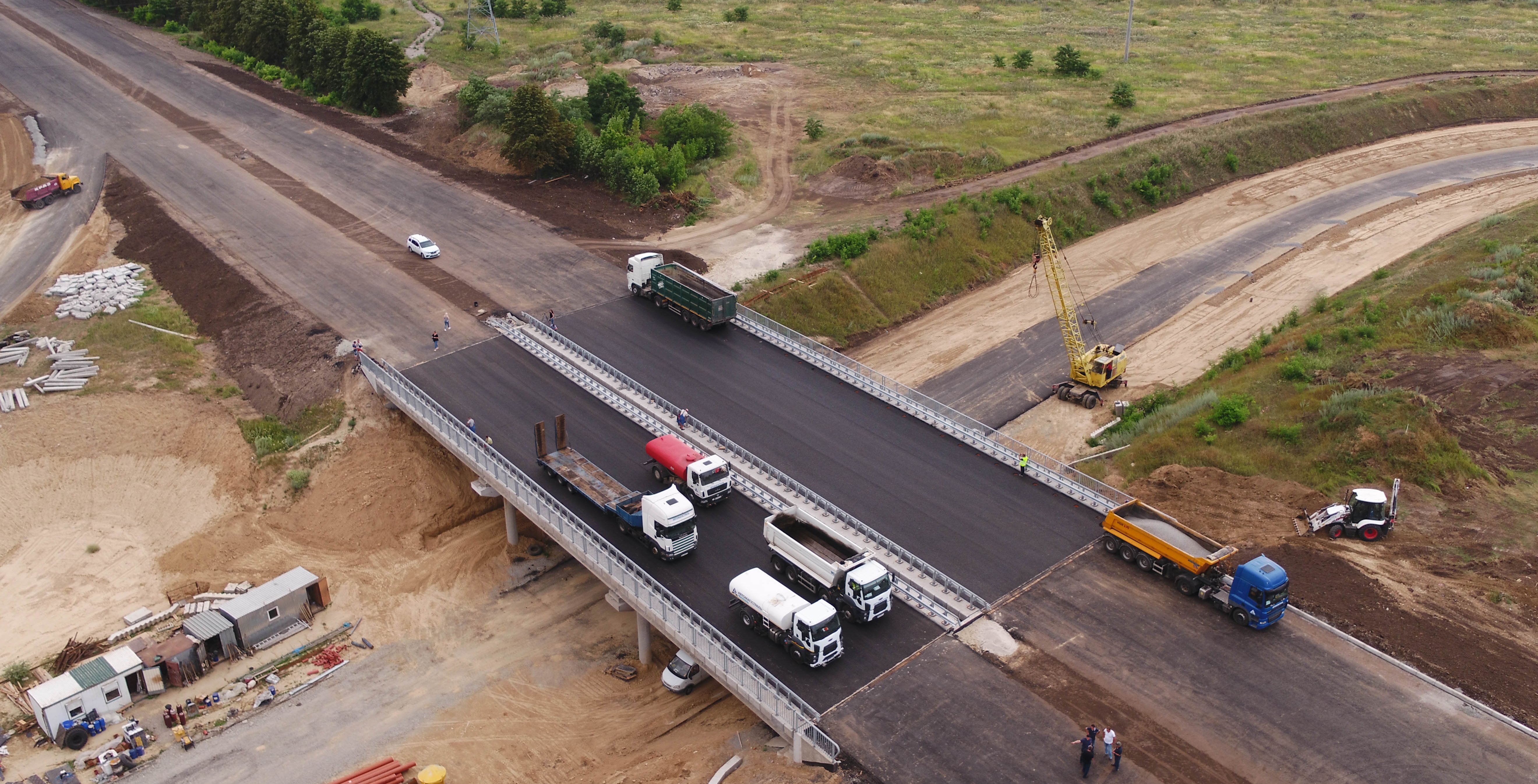 На сьогодні вже заасфальтували дорогу через шляхопровід. Наразі асфальтують підходи до нього та з’їзди: вже укладали два з трьох шарів покриття. За проектом, товщина дорожнього «одягу» – 25 см.