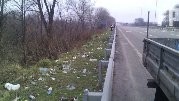 Сміття розкидає не Укравтодор, не міністр чи Прем`єр-міністр, а переважно самі автомобілісти: недопалки, пляшки, цілі мішки.